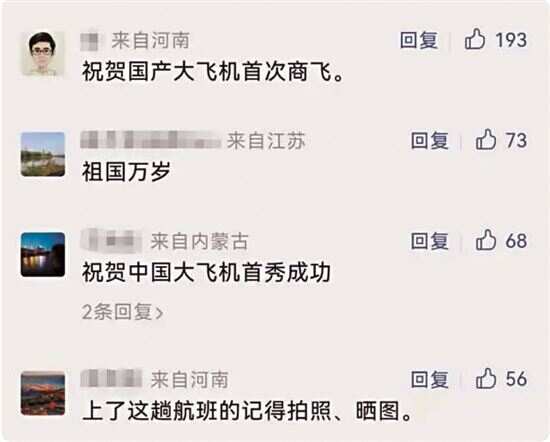 网友:预祝C919首航成功! |