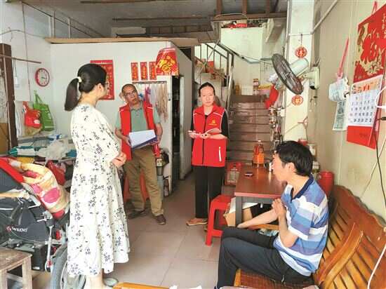■盖晓青(右二)入户走访中发现,这家的孩子为节省午餐费,坚持每天回家吃午饭,步行往返需要一小时。盖晓青随即发起一次爱心助学活动。 |