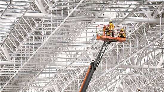 ■6月19日,广州白云火车站正式封顶,标志着总重达十万余吨站房钢结构整体完工,全面进入室内外装饰装修阶段,预计今年底竣工。 新华社发