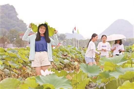 ■接天莲叶无穷碧,清远英德市英红镇的田园风光吸引城里人不断前来。 |