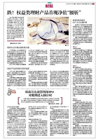 首只净值“腰斩”的权益类银行理财子产品出现了。近期,光大理财旗下一款“阳光红卫生安全主题精选”理财产品(下称“阳光红卫生”),7月6日的单位净值首次跌破了0.5元,至7月18日最新净值报0.49