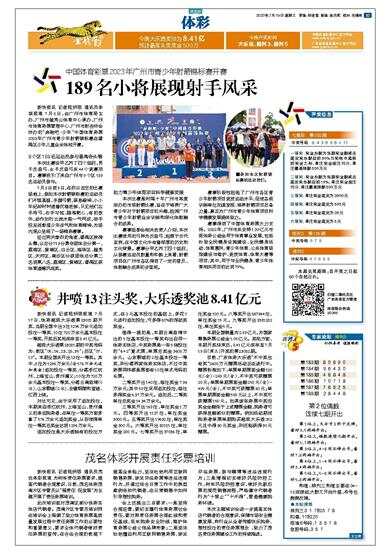 中国体育彩票2023年广州市青少年射箭锦标赛开赛 新快报讯 记者陆妍思 通讯员李琪报道 7月8日,由广州市体育局主办,广州市越秀山体育中心承办,广州市体育彩票管理中心、广州市射击协会协办的