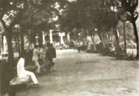 ■1921年市民在第一公园的中轴林荫路闲坐休憩 |
