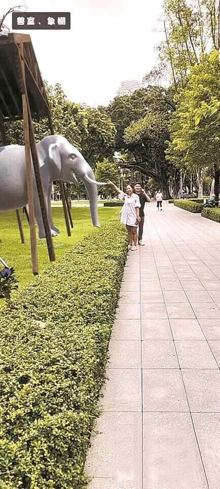 ■曾在公园展示大象的象棚AR复原实景 |