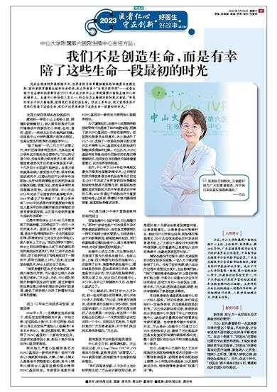 “实现自己的抱负,又能更好地为广大的患者服务,对于我们来说其实是很幸福的。”——方丛 完成全国首例卵巢移植手术、世界首例自体骨髓细胞线粒体胞浆内显微注射、国内首例男童睾丸组织冷冻保存,成立华南首个“生育力保存库”……这些全国乃至全球的创举都写在2010年才成立的中山大学附属第六医院生殖中心的成绩单上。生殖中心的始创人员之一、科主任方丛教授对新快报记者说:“年轻时有点不知天高地厚,觉得我们是在创造生命。但这么多年后,我又觉得其实不是我们创造了这些生命,我们不过是有幸陪了这些生命一段最初的时光。” 生育力保存领域走在全国前列 瘦狗岭一带的小山上有条小坡,顺着斜坡蜿蜒而上,映入眼帘的是好几栋外墙漆成不同颜色的小洋楼,红的、黄的、蓝的,一栋栋左左右右地爬坡而建。这里是中山大学附属第六医院北院区,也是全国名列前茅的生殖医学中心。 “除了能做‘一代二代三代’试管之外,我们还有很多特色技术,尤其在生育力保存这方面走在全国前列。”方丛向记者介绍,没有生育力保存技术之前,很多癌症患者放化疗后卵巢早衰甚至不孕,十几岁的小女孩就可能绝经。生育力保存就是在病人接受放化疗前,保存卵巢组织或卵子,已婚女性还可以保存冷冻胚胎,治疗结束病情稳定后再把卵巢组织解冻回植,恢复月经,或准备孕育时再回植解冻胚胎。在此领域,中心还在2012年完成了全国首例卵巢移植手术,2016年建立了华南首个“生育力保存库”,2022年完成国内首例重度地中海贫血儿童采用自体冻融卵巢组织移植成功诱导青春期发育,以及国内首例男童睾丸组织冷冻保存…… 已婚未育的林女士(化姓)几年前发现了卵巢肿瘤,之后便经历了一次又一次的卵巢手术。直到五年前,由于病情严重,医生只能将她残余的一点点卵巢组织切净,那将使林女士完全失去怀孕能力。家人联系上了方丛。“我还记得快下班时,林女士的母亲带着女儿切下来的最后那些卵巢组织找到我们,我们二话不说连夜寻卵,花了很多时间才艰难地找到了一颗卵子,那时已是晚上9时。”后来,经过辅助生殖技术,林女士成功当了母亲。 “很多肿瘤科医生并没有意识到,为病人做放化疗前,可以提议让病人先做生育力保存。”方丛说,为此,中心团队积极对肿瘤科医生进行宣教,通过肿瘤科医生将生育力保存的理念告诉他们的患者,避免了很多病人治好了肿瘤却无法孕育的遗憾。 成立13年来已完成多项全球、全国创举 2022年8月,一名健康宝宝成功诞下,然而宝宝的降临极为不易。怀他之前,宝宝妈妈小美(化名)怀过两胎,均在孕22周左右发现严重胎儿心脏畸形(法洛氏四联征)。通过检测发现,第二胎携带了FLNC基因的一个新的突变位点,且该突变遗传自小美,然而小美并没有任何心脏异常表现。 两次胎儿严重心脏畸形是否为FLNC基因这一新突变所致?追问下得知,小美家族中妈妈、大姨、小姨、小姨女儿都患有不同程度的心脏病,其中小姨和小姨的女儿基因检测均显示携带FLNC基因突变。专家团队高度怀疑FLNC基因这一新突变与前两胎心脏畸形相关。 为了谨慎起见,生殖中心在梁晓燕教授的带领下先是做了体外细胞实验,明确了该FLNC基因这一突变的致病性。经医院伦理委员会同意后,为小美进行了PGT-M,选择了一枚染色体拷贝数正常并且不携带FLNC基因突变的胚胎进行移植并获得临床妊娠。方丛认为,FLNC基因突变导致法洛氏四联征的机理仍需继续研究,但突变位点的确定无疑有着重要意义,此为世界首例报道。 此外,中心早于2014年在华南地区最先开展男性显微取精手术,让非梗阻性的无精症患者也有机会生育自己的宝宝;2017年完成了世界首例自体骨髓细胞线粒体胞浆内显微注射,提高胚胎质量较差或年龄较大的不孕患者成功怀孕的几率;2020年通过干细胞治疗中重度宫腔粘连,让受损、菲薄的子宫内膜得到恢复,提高胚胎种植成功率。 中心是为减少不孕不育患者等待时间而成立 回首生殖中心创办时期,方丛感慨万千。“那时广东省包括广州市很多不孕不育患者就医要排长队,有的甚至需要排队一两年才能排上做试管婴儿,但很多病人由于年龄等原因,都是耽搁不起的,我们希望能通过增加生殖中心,减少患者等待时间,为他们提供更好的服务。” 生殖中心成立之前,方丛等始创人员参观了国内外很多生殖中心,包括山东、上海、四川等国内知名的生殖中心,还参观了日本、美国等多家生殖中心,看环境是怎样的、医生是怎样工作的、培养室是怎么设计的、怎么进行胚胎培养的,再取众家之长,设计自己的生殖中心。2010年,在中山六院建院不久后,生殖中心就成立了。 “中心建成后,我们才扩大人才队伍,招一些志同道合的同事来,到今天有150多人的规模。”方丛说,与患者交流得知,很多患者对生殖中心评价很好,觉得这里环境好、人文关怀多,医护态度也很好。“这也算是一次创业,有这样一个契机能让自己跟从一个优秀的团队去创立这样一个中心,实现自己的抱负,又能更好地为广大的患者服务,对于我们来说其实是很幸福的。”方丛说。 既有新技术也有新的服务理念 中心成立之初,就强调创新。方丛告诉记者,中心logo“New IVF”中,IVF是体外授精,就是常说的“试管婴儿”,New就是创新,既有新技术也有新的服务理念。 “我们在服务创新、人文关怀上也比较积极主动。