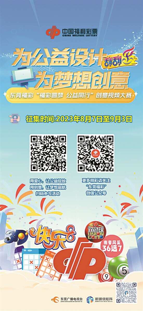 “福彩圆梦 公益同行” 新快报讯 记者陆妍思 通讯员方志良报道 为立足福彩“扶老、助残、救孤、济困”的发行宗旨和“公益、责任、阳光”福彩文化,进一步做好福彩公益宣传工作,助力福彩优秀公益主题视频的创作和传播,东莞市福利彩票发行中心将面向全省举办东莞福彩“福彩圆梦·公益同行”公益创意视频大赛。 本次大赛的征集主题为“福彩圆梦 公益同行”,常住广东省内的个人、登记在广东省内的机构或团体均可报名参加 。视频作品内容要求导向正确,传递社会正能量;围绕展示福彩“扶老、助残、救孤、济困”的发行宗旨和“公益、责任、阳光”福彩文化;展现福利彩票践行自身责任、支持公益事业、传播慈善理念的良好形象;作品要求必须为原创,画面清晰、曝光准确、构图美观、镜头稳定。视频作品时长3分钟以内,须以横版呈现,格式为mp4、mov、mpeg、rmvb等1080P高清影像,以摄像机、数码相机、手机拍摄均可。 本次比赛共分三个阶段:8月7日至8月20日为作品征集阶段,参赛者在规定的时间内按统一的规范要求,提交报名资料及参赛作品的相关材料。组委会对作品报名材料的完整性、真实性、合规性等进行资格审核,审核通过后发布专题页面。8月21日至9月3日为网络投票阶段,网络投票最后得票数量排名换算成网络得分计入评审最终得分;9月4日至9月5日为评审阶段,由民政局代表、东莞市文学艺术界联合会代表、市福彩中心代表、专业媒体人组成的专业评审团将对已提交作品进行专业评审,并计算出作品最终得分。作品得分=网络得分(25%)+专业评审团得分(75%),单部作品得分总分值为100分。 网络得票环节中,以投票排名计分,第1名至第5名计25分,第6名至第15名计23分,第16名至第25名计21分,第26名以下(含第26名)计19分;专业评审评分中,每部作品从主旨内容、视频创意、镜头表现、后期效果、剪辑衔接、配乐音效等角度进行独立评分。 最终根据作品总得分评选出比赛获奖名单,其中一等奖3名,奖金8000元;二等奖5名,奖金5000元;三等奖8名,奖金3000元;优秀创意奖10名,奖金1000元。获奖名单将在东莞阳光网、东莞福彩网同步公示,市福彩中心将于9月组织举办大赛颁奖典礼,邀请相关政府部门代表、大赛获奖代表和新闻媒体记者参加,扩大社会传播影响力。