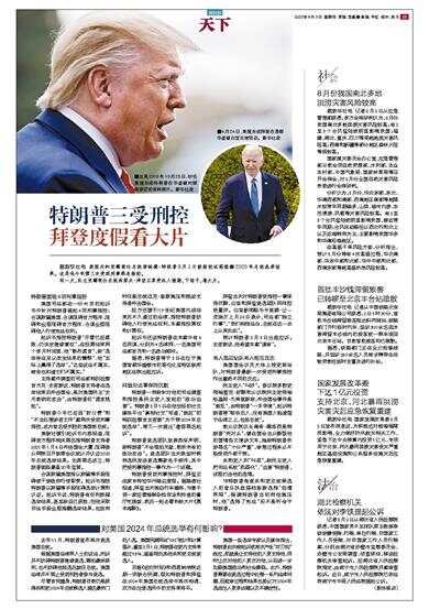 据新华社电 美国共和党籍前任总统唐纳德·特朗普8月1日被指控试图推翻2020年总统选举结果。这是他今年第三次受到刑事罪名指控。 同一天,民主党籍现任总统约瑟夫·拜登正享受私人假期,下馆子,