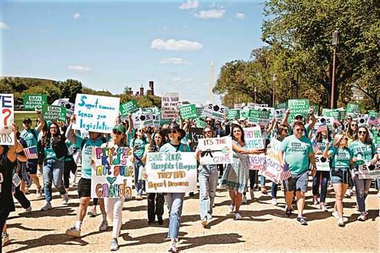 ■4月17日,人们在美国首都华盛顿参加控枪游行,呼吁禁止销售攻击性武器,应对美国枪支暴力问题。 新华社发 |