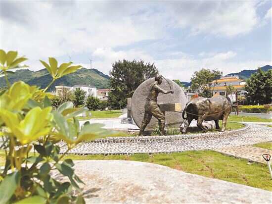 ■在连州大路边镇油田村委会黄坪村,艺术雕塑与田园风光相得益彰。 |