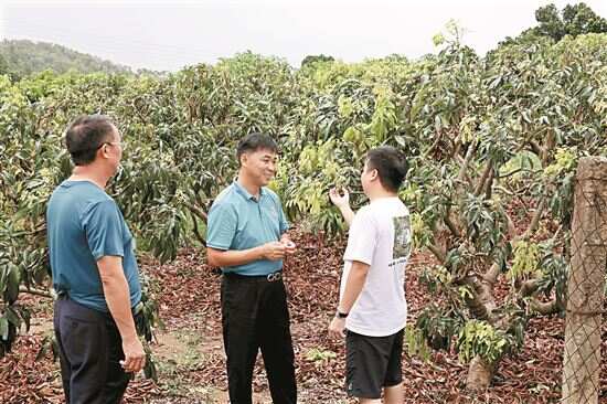 ■工作队队长陈柏和(中)到孖宝荔枝种植基地调研。 |