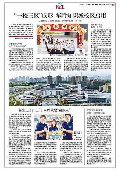 全寄宿完全中学,明年计划招收新高一8个班 9月3日,华南师范大学附属中学(下称“华附”)举行知识城校区(首开区)落成仪式暨2023学年开学典礼。随着新校区的正式启用,华附知识城校区将与石牌校区、五山校区构成华附“一校三区”的办学格局。该校区明年计划招收新高一8个班。 ■新快报记者 邓善雯 李小萌 全寄宿完全中学 设立“丘成桐少年班” 华附知识城校区位于广州市黄埔区中新广州知识城南起区,校区规划设计及校园景观布置与自然融合,山环水绕,宜居宜学。学校总用地面积300亩,总建筑面积约28万平方米,总投资约26亿元,规划规模为78个班,其中初中部18个班、高中部60个班,为全寄宿完全中学。 随着新校区的正式启用,华附知识城校区将与石牌校区、五山校区构成华附“一校三区”的办学格局(其中“一校”代表“一所核心校”,即华南师范大学附属中学;“三区”代表核心校的三个校区,即石牌校区、五山校区、知识城校区。另外还有“三分校”,代表华附创办的三所分校,分别是华附南海实验高中、华附汕尾学校、华附增城学校)。三个校区实行一体化办学和管理,校区师资由学校统一调配。校区之间实施统一集体备课、统一教学进度、统一考试诊断,一体发展。 华附党委书记、校长姚训琪表示,今年是华附建校135周年,也是华附承办广东奥校30周年。“丘成桐少年班”开办,丰富了广东奥校的育人模式。姚训琪寄语新生要学以科学,成就未来科学梦想;要保持创新,助力教育强国拔尖人才培养;要坐言起行,将科学人文融入日常学习。 明年预计招收新高一8个班 新快报记者了解到,华附知识城校区今年首批招收初一6个班超200名学生,其中包括2个“丘成桐少年班”。明年知识城校区将开始招收高一新生,独立招生代码,预计为8个班的规模。“学校以后将逐步达到78个班的教学规模,人数接近3900人。”姚训琪表示希望用十年时间实现达成满班额的最大规模。 据悉,新校区初中部招生主要面向黄埔区,包括校区附近的小区楼盘,而明年高中部的招生则是面向广东全省,主要以广州市为主。“知识城校区周边有很多高新企业,还有一些高校研究生院,所以创新课程将成为我们的特点和特色。”姚训琪介绍,新校区会借助高新企业的资源,让学生互动交流,并结合学生的特点,开设一系列创新类课程,打造科学创新、科技创新特色。