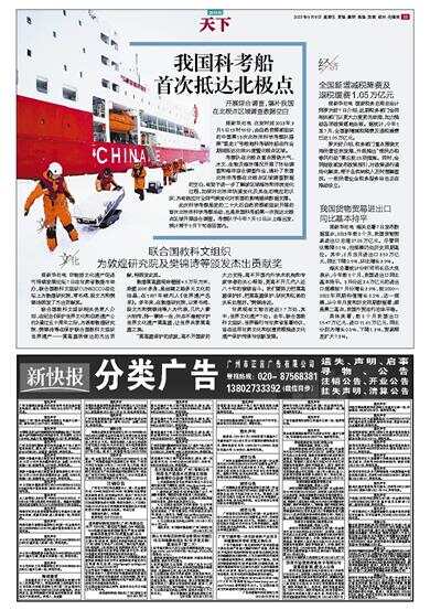 开展综合调查,填补我国在北极点区域调查数据空白 据新华社电 北京时间2023年9月5日13时55分,由自然资源部组织的中国第13次北冰洋科学考察队搭乘“雪龙2”号极地科考破冰船在作业期间抵