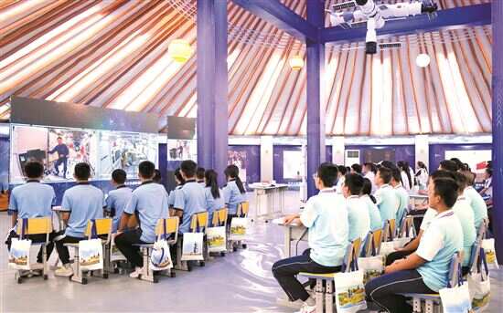 ■21日,在内蒙古阿拉善盟额济纳旗,学生收看“天宫课堂”。新华社发 |