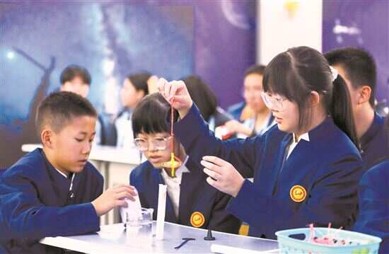 ■21日,在内蒙古阿拉善盟额济纳旗,学生在做趣味实验。新华社发 |