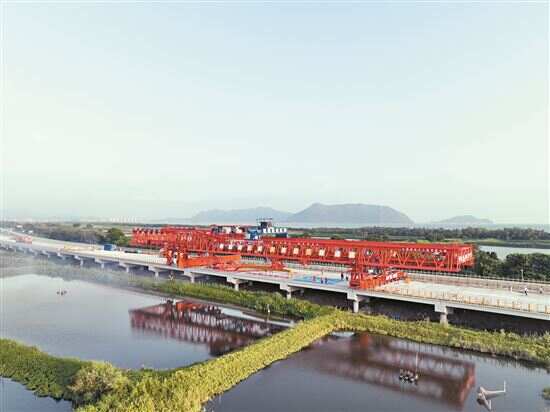 新快报讯 记者许力夫 通讯员沈高 詹桃 张力心报道 9月21日下午,随着一声令下,施工员通过信息平台操纵桩梁一体化智能造桥机,将一片长16米、重40吨的双T梁精准架设到大桥支座上。至此,深汕西高速改扩建项目梅陇特大桥最后一片预制梁板架设成功,桥梁共342跨施工顺利完成,全球首台桩梁一体化智能造桥机造出“职业生涯”中第一座桥。 桩梁一体化智能造桥机长92米,重580余吨。相比传统现浇桩基础的施工工艺,它集成了引孔、打桩、吊装盖梁、梁板以及装配施工等多功能一体化综合施工技术,能就地实现桥梁各结构件及桩基础的全部施工,实现了“搭积木”式的桥梁建设模式。不仅如此,造桥机能同时打开4个综合施工技术作业面,效率大幅提高,2.5天即可完成一跨桥梁施工,比传统施工效率提高了至少3倍以上。