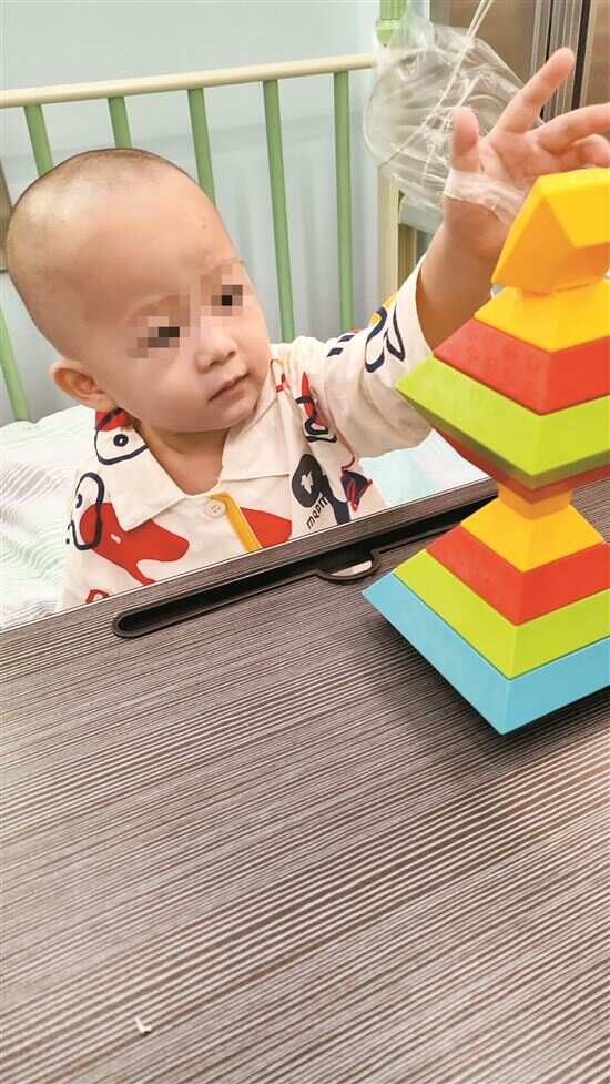 ■小树桦在病房里搭积木,他还不明白自己为什么要住院。 |