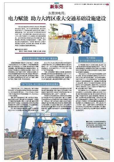 “我们项目建设的时间很紧,供电部门很快就帮我们完成了通电。有了专业的供电服务,我们发展的底气更足了。”东莞港四期工程项目负责人黄继义满意地说道。近日,南方电网广东东莞西区供电局专班“上线”,对东