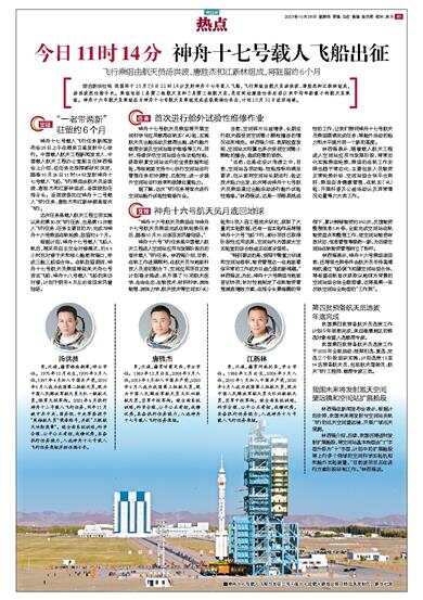 今日11时14分 神舟十七号载人飞船出征