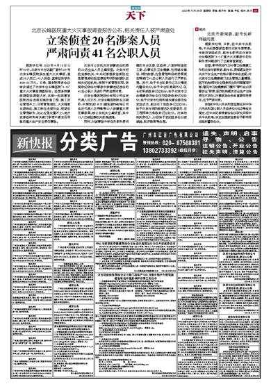 立案侦查20名涉案人员 严肃问责41名公职人员