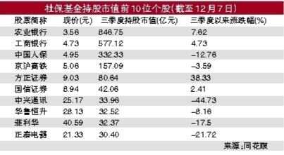 相较去年同期持仓个数增长超10% 12月6日,财政部发布关于向社会公开征求《全国社会保障基金境内投资管理办法(征求意见稿)》意见的函,根据文件,股票类、股权类资产最大投资比例分别可达40%和30%,还增加和调整了全国社保基金投资范围。新快报记者注意到,社保基金早已加大了配置A股的力度,据同花顺数据统计,A股三季报中,社保基金现身719股,合计持股4318.16亿元,相较去年同期持仓621股增长超10%。社保基金持仓个股中,三季度以来有520只个股涨幅处于负值。有投资者表示,“这也就意味着,若社保基金依旧持仓的话,就可抄社保基金的底了。” 社保基金年均投资收益率超7% 社保基金投资风格以稳健著称,社保基金自2000年8月成立以来的年均投资收益率7.66%,累计投资收益额16575.54亿元。20多年中,仅2008年、2018年、2022年,因为全球政治经济形势发生深刻变化等因素出现浮亏现象。《全国社会保障基金理事会社保基金年度报告》显示2022年末,社保基金资产总额28835.21亿元。其中直接投资资产9583.01亿元,占社保基金资产总额的33.23%;委托投资资产19252.20亿元,占社保基金资产总额的66.77%。据浙商证券统计,假设政策工具箱将社保权益配置比例提升5%-10%,社保基金相应提升权益仓位,则预计为市场带来0.16万亿元-0.32万亿元增量资金。有分析人士指出,若社保基金投资股票类资产最大投资比例达40%,意味着会为A股市场注入7400亿元资金。 社保基金持股曝光 截至三季度末,医药生物、基础化工、有色金属和电力设备等行业较受青睐,社保基金持仓市值均超百亿元。社保基金持仓市值超10亿元的个股51只,其中农业银行、工商银行、中国人保和京沪高铁四只个股持仓超百亿元。值得一提的是,持仓市值位列第五位的方正证券,社保基金理事会持有约10.9亿股,为第三大流通股东,今年以来方正证券股价涨超40%,而同期大盘上涨-3.98%。但是社保基金重仓中,也有不少个股三季度以来跌幅较大,如中兴通讯下跌超44%,正泰电器跌超20%。菲利华跌超17%。 从持股比例来看,中国人保、菲利华、确成股份和方正证券等8只个股仓持比例均超10%。在新进持仓的个股中,中国平安、国投电力、华鲁恒升、晋控煤业获社保基金新进重仓超5亿元。持续增持个股中,增持金额达7.58亿元山东黄金最受社保基金青睐,近日期现货黄金价格再创下历史新高,山东黄金股价今年以来最高涨幅逼近50%。此外,云铝股份、菲利华和伊利股份等个股连续增持金额均超5亿元。前海开源基金首席经济学家杨德龙表示,在国内经济逐步复苏、A股估值整体较低的情况下,社保基金今年三季度加仓,提振了市场信心。目前,“不破不立,跌破3000点也会吸引一部分资金入场抄底布局。” ■新快报记者 涂波