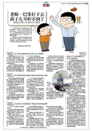 老师一巴掌打下去 孩子左耳听不到了