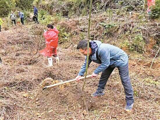 ■工作队队员宣传、动员群众种下杉树、香樟树、银杏树等树种。 |