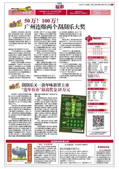 新快报讯 记者陆妍思 通讯员郭新庆 盘芷滢报道 近期,广州彩市喜事不断,接连中出刮刮乐即开票大奖。广州花都区的彩民郑先生(化姓)和海珠区的彩民曾先生(化姓)分别中得“招财猫”刮刮乐即开票一等奖5