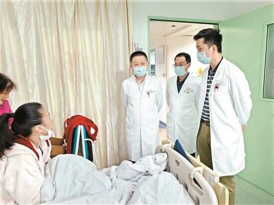 ■术后恢复期,专家团队前往病房了解万女士的身体状况。 |
