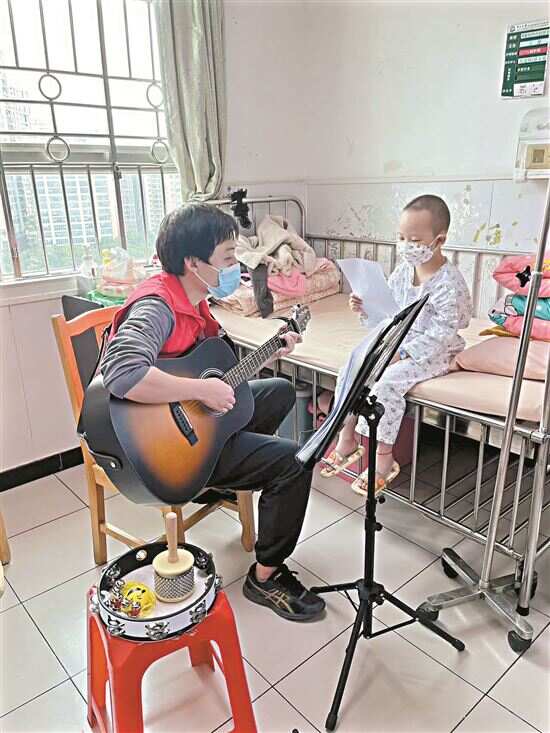 ■小羽琪化疗期间,有志愿者来给羽琪做音乐疗愈。 |