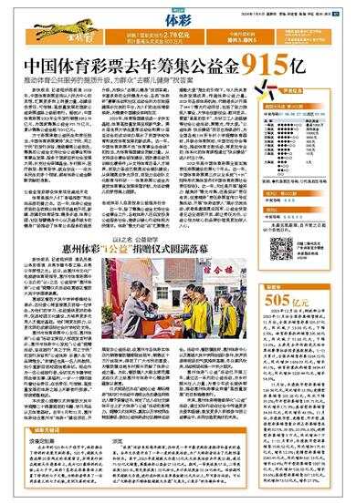 中国体育彩票去年筹集公益金915亿