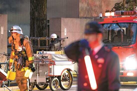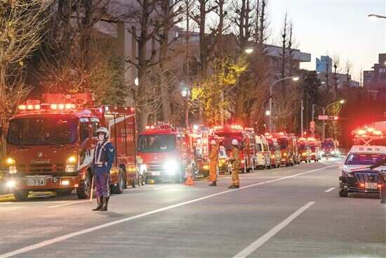 ■1月8日,消防员和警察在日本前首相田中角荣位于东京的旧宅前执行公务。新华社发 |
