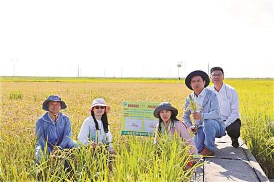 ■利用AT1基因改良的耐盐碱水稻在吉林大安盐碱地丰收。(图源:中国科学院遗传发育所) |