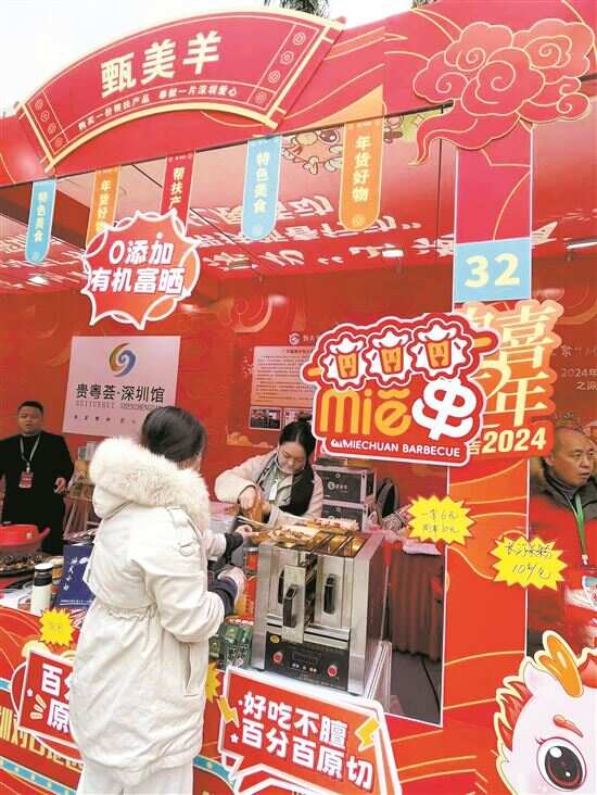 新快报讯 记者农艳芳报道 “我们使用烤串机烤制从忻城带过来的羊肉串,香味吸引了许多行人来品尝购买,推广效果很不错。”1月25日至28日,在深圳罗湖区东门步行街举办2024年广东省“消费帮扶新春行动”之深圳对口地区美食年货大集活动(下称“年货大集”)上,带着自广西忻城县澳湖肉羊产品亮相的广东甄美羊牧业有限公司商务总监王洁欣表示,希望通过年货节的大流量让更多食客品尝到来自广西忻城县的有机富硒羊。 新快报记者了解到,此次年货大集以美食年货为媒促进产销对接成效,打造一场对口集地区美食、年货、文化等领域于一体的交流盛会,推动帮扶地区优质产品“进深融湾”和文化“破圈出彩”。除了新鲜羊肉串之外,广东甄美羊牧业有限公司还带来了蝴蝶排、法式小切等鲜肉,以及烤羊排、烤羊小腿等各种预制菜产品,“主要进行现场推广销售,也是希望收集到各位食客的反馈意见,促进产品品牌的推广。” 实际上,这是忻城肉羊向大湾区市场进军的又一次探索。近年来,广东茂名信宜、高州、化州三市与广西来宾市忻城县聚焦产业振兴,持续推进粤桂协作澳湖肉羊产业示范园区共建共营,推动忻城县规模化、产业化发展特色生态澳湖肉羊产业。如今,总投资2.5亿元、占地494.3亩的华南地区澳湖肉羊产业示范园区已配置核心种羊繁育基地、肉羊屠宰深加工食品厂、冷链物流配送中心及肉羊大数据中心,产业园正式步入高速发展的轨道。值得一提的是,依托“种养加销扶”各环节赋能,产业园满产后,加上带动大型合作社、合作户发展养殖等年出栏羔羊可达30万只。 同时,粤桂协作驻忻城帮扶团队还引入“广东消费帮扶联盟”和东部科研院所、龙头企业开展合作,不断聚合多方资源加大园区“壮美羊”品牌建设力度,同时将产品纳入粤桂协作“土司贡礼”区域公用品牌。甄美羊此次带到深圳年货节的肉羊便来自忻城县粤桂协作澳湖肉羊产业园。