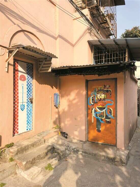 ■在怡乐社区,画上现代艺术风格作品的门。 |