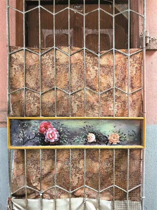 铁门虽然锈迹斑斑,但主人喜欢花卉,艺术家们便如其所愿 |