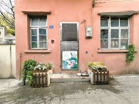 长年摆放着杂物的门口,现在种上了花,画上了主人喜欢的荷花 |
