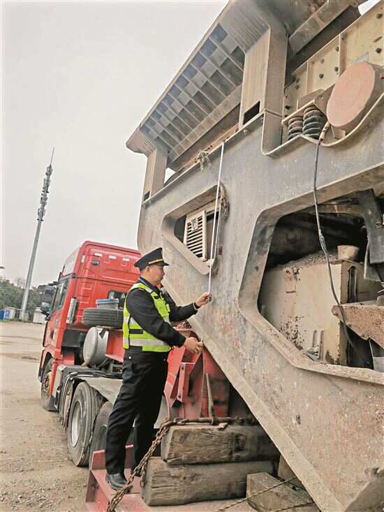 ■何耀明检查进入超限检测点货运车辆外观尺寸。 |