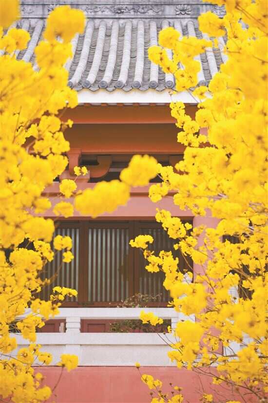 ■羊城春日,广州光孝寺内的黄花风铃木盛开,黄色的花与寺内的建筑交相辉映,别有一番韵味。 新快报记者 郭思杰/摄