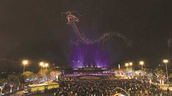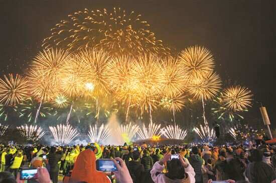 ■精彩的烟花和无人机表演吸引大量观众。 |