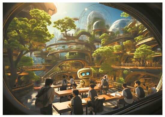 ▶在Pia人工智能工坊里,来自广州红火炬小学的12岁李奕霖借用AI创作的《智慧绿色的未来:我们学校的无废校园》。 |