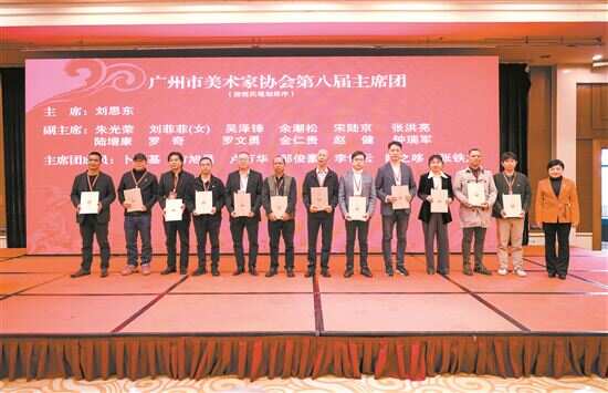 广州市美术家协会换届大会圆满举行 3月16日上午,广州市美术家协会第八次会员代表大会在广州市珠江宾馆举行,选举产生了新一届主席团和理事会,圆满完成协会换届工作。中共广州市委宣传部常务副部长曾伟玉,广州市文联党组成员、专职副主席胡子英,广州市文联党组成员、专职副主席吴碧,广州市文联一级调研员(市管干部)陈启银,广东省美术家协会专职副主席叶正华,中共广州市委宣传部文艺处(电影处)处长、一级调研员皮健,老艺术家代表陈金章、陈永锵、方楚雄、李醒韬、周国城、苏小华、黎日晁等领导嘉宾出席会议。 朱光荣刘菲菲吴一函等当选副主席 聘任汪晓曙许鸿飞方土为名誉主席 大会听取并审议通过了广州市美术家协会第七届理事会、监事会和财务工作报告,审议通过了《广州市美术家协会章程(修改草案)》《广州市美术家协会第八次会员代表大会选举办法》等事项。大会选举产生了第八届理事会、监事会及主席团,刘思东当选主席,朱光荣、刘菲菲(女)、吴一函(吴泽锋)、余潮松、宋陆京、张洪亮、陆增康、罗奇、罗文勇、金仁贵、赵健(赵健行)、钟瑞军当选副主席,卜绍基、方旭昌、卢万华、邹俊豪、李世云、陈之哆、张铁威当选主席团成员(以上人员按姓氏笔画排序)。 大会还聘任汪晓曙、许鸿飞、方土为广州市美术家协会第八届名誉主席,杨家聪、唐大禧、卢延光、周国城为第八届艺术顾问,李晓白、张弘、区广安、曹雪、孔繁乐、张思燕(女)、陈铿、苏星、黄健生、朱颂民、郑阿湃为第八届学术委员会委员(以上人员按年龄排序)。 大会任命张铁威为秘书长,朱田生(朱田盛)、李夏夏、李家馨、姚涯屏、杨健、胡兵、梁天铭、梁志钦、梁俊彦、黄奔凯、黄亮为副秘书长(以上人员按姓氏笔画排序)。 加强队伍建设,打造品牌活动 广州市美术家协会第七届主席汪晓曙代表第七届理事会,总结回顾了协会过去的辉煌历程。他表示,过去五年,在中共广州市委宣传部、广州市文联的正确领导和大力支持下,广州市美术家协会团结带领广大美术家和美术工作者,始终坚持“围绕中心、服务大局”的原则,自觉担负起新的文化使命,把握大湾区发展机遇,加强队伍建设,打造品牌活动,主题精品创作成绩斐然,“文艺两新”美术人才脱颖而出,有力地树立了新时代广州美术的良好形象。 新当选的广州市美协主席刘思东表示,“广州市美协是一个温馨的集体,是一个温暖的艺术大家庭,是一个互相促进,互相扶持,互相推动的组织。广州市美术家协会成立于1987年,至今已有37个年头。那一年,也是我从广美毕业,正式参加社会工作第一年,不觉中,有了点儿因缘。广州市美协37岁,她很年轻,富有活力、富有激情。我相信,在当今文化高度发展的时代,在通往高质量发展的路上,向前的路将更宽、更广。” 中共广州市委宣传部常务副部长曾伟玉: 以美术的形式把握新时代的铿锵脉动 广东省美协专职副主席叶正华代表广东省美协向大会顺利召开表示祝贺。他表示,广州市美协是广东省规模最大的团体会员之一,有着巨大的社会影响力。通过这次大会,广州市美术家协会选举出了新一届主席团,加入了不少新生代力量,顺利完成新老交替的任务,相信在广州市委宣传部的指导下,在广州市文联的正确领导下,在第八届主席团的带领下,在全体会员的努力下,广州市美术家协会将迎来更大的发展,为广州美术事业的繁荣再立新功。 广州市文联党组成员、专职副主席胡子英在会上表示,广州市美术家协会在历届主席团的带领下,团结会员,服务大局,用多彩的画笔描绘美好生活,见证时代进步,呈现出繁荣发展的良好局面。广州市美术家协会是目前我市各文艺家协会中会员人数最多、活动内容最丰富、社会影响面最广泛的协会。希望市美术家协会在以刘思东为主席的新一届主席团带领下,更加注重思想政治建设的统领作用,更加注重提升主题文艺的引领作用,更加注重协会自身建设,推动出精品出人才,继往开来,开拓创新,再创辉煌。 中共广州市委宣传部常务副部长曾伟玉在讲话中表示,近年来,广州市美协聚焦精品创作,先后承办了第十三届全国美展港澳台海外华人展区、“美丽湾区——全国美术作品展”“理想之光”广州红色岁月美术展等国家级、省市级展览活动,以美术的形式把握新时代的铿锵脉动,为实现中华民族伟大复兴提供精神力量。希望市美协在新一届主席团的带领下,抓好精品创作,推动广州美术攀高峰,坚持德艺双馨,凝聚团结更多优秀人才,把握美术创作导向,继续讲好中国故事。要切实提高原创能力,着眼于对历史、当代与未来的深刻思考,在创作思想、审美内涵、时代风貌和艺术表现上积极探索,大力弘扬中华美学精神,创作出更多彰显广州元素,体现岭南风采的优秀美术成果,用美术讲好中国故事,推动文化高质量发展,谱写文艺新篇章贡献应有的力量。 对话 “努力发展成粤港澳大湾区 美术精品的‘创作引擎’” 收藏周刊:在过去数年间,您一直与美协的同道策划多个艺术活动,这一刻回顾感觉如何? 刘思东:我在市美协的“大家庭”里,曾与大家一同组织策划,落实执行了多张具有影响力的集体创作,其间让我体会尤为深刻的是,这里有令人尊重的、德才兼备的前辈、前任,还有许多有才华、有才能、杰出的艺术家,还有正在艺术道路上努力前行的有为