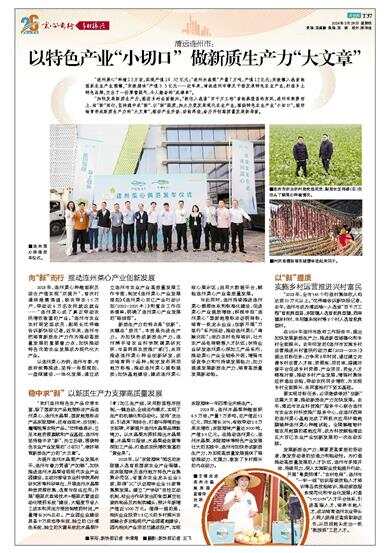 “连州菜心”种植13万亩,实现产值14.32亿元;“连州水晶梨”产量7万吨,产值12亿元;东陂镇入选首批国家农业产业强镇,“东陂腊味”产值3.5亿元……近年来,清远连州市铆足干劲发展特色农业产业,打造乡土特色品牌,交出了一份厚重提气、令人振奋的“成绩单”。 “加快发展新质生产力,推进乡村全面振兴。”抓住入选省“百千万工程”首批典型县的东风,连州市乘势而上、向“新”而行,坚持稳中求“新”、以“新”提质,加大力度发展现代农业产业,围绕特色农业产业“小切口”,做好培育形成新质生产力的“大文章”,推动产业升级、动能再造,奋力开创高质量发展新局面。 向“新”而行 推动连州菜心产业创新发展 2023年,连州菜心种植面积及综合产值实现“双提升”,首次打通供港澳渠道,联农带农1.1万户,带动近6万名农民就近就业……“连州菜心成了真正带动农民增收致富的产业。”连州市农业农村局党组成员、副局长沈伟雄告诉新快报记者,近年来,连州市把培育新质生产力作为推动高质量发展的重要着力点,加快推动特色优势农业发展成为现代化大产业。 以连州菜心为例,连州市委、市政府统筹推进,坚持一张图规划、一盘棋建设、一体化发展,通过成立连州市农业产业高质量发展工作专班,制定《连州菜心产业发展规划》《连州菜心百亿产业行动计划(2022-2025年)》和重点工作任务清单,明确了连州菜心产业发展的“路线图”。 新质生产力的特点是“创新”,关键在“质优”,本质是先进生产力。为加快形成新质生产力,连州携手省农业科学院蔬菜研究所、市县两级农技推广部门,共同推进连州菜心种业创新研发,成功培育两个品种;制定发布两项地方标准,推动连州菜心提标提质;加快基地建设,建成连州菜心核心展示区;启用大数据平台,赋能连州菜心产业高质量发展。 与此同时,连州持续推进连州菜心溯源体系和标准化建设,促进菜心产业提质增效;积极申报“连州菜心”国家地理标志证明商标,培育一批龙头企业;创新开展“万里行”系列活动,推动连州菜心“南融北拓”;举办农村电商培训,壮大农产品电商销售人才队伍;扶持企业研发连州菜心深加工产品系列,推动菜心产业全链条升级,增强市场竞争力和可持续发展能力,加力提速发展新质生产力,培育高质量发展新动能。 稳中求“新” 以新质生产力支撑高质量发展 “我们连州特色农产品非常丰富,除了国家农产品地理标志产品连州菜心、连州水晶梨,国家地理标志产品东陂腊味,还有丝苗米、沙坊粉、鹰嘴桃等农特产品。”沈伟雄表示,立足本地资源禀赋和产业基础,连州市坚持稳中求“新”、先立后破,围绕特色农业产业发展的“小切口”,做好培育新质生产力的“大文章”。 为提升连州水晶梨产业发展水平,连州市着力贯通“产加销”,加快推进连州水晶梨省级现代农业产业园建设,主动对接省农业科学院果树研究所等科研单位,开展连州水晶梨种质资源收集、选育与良法应用;开展“棚架式栽培技术+棚架式管道自动化喷药系统”建设,大幅度节省人工成本和灵活方便控制喷药时间,产量增长30%左右。产业园企业建设具备十万级洁净车间、独立的CIP清洗系统、独立的灭菌系统的水晶梨汁(膏)加工生产线,采用数显程序控制,一键启动,全线运作模式,实现了生产的机械化和自动化。坚持“走出去、引进来”相结合,打造叫得响的金字招牌,不断提升连州水晶梨品牌影响力。以水晶梨为原料推出水晶梨膏、水晶梨口服液、水晶梨益生菌等深加工产品,打造成农民增收致富的“黄金果”。 2023年,以“东陂腊味”闻名的东陂镇入选首批国家农业产业强镇。在东陂腊味及连州地方特色产业集聚示范区,省重点农业龙头企业2家,取得“SC”认证腊味企业18家等集聚发展。建立“产学研”良性互动机制,校企合作研发出即食型真空包装肉制品及肉制类罐头,预计年新增产值近1000万元。值得一提的是,相关企业投资1.3亿元的乡村振兴农旅融合多功能现代产业园落地建设,园内相关产业项目已建成投产,实现东陂腊味一年四季全天候生产。 2023年,连州水晶梨种植面积6.5万亩,产量7万多吨,总产值近12亿元,同比增长20%,有效带动2.8万果农增收;东陂腊味产量达3000吨,产值3.5亿元。在推动连州菜心、连州水晶梨、东陂腊味等特色产业发展壮大的实践中,连州市加快形成新质生产力,为实现高质量发展提供了强劲推动力、支撑力,激发了乡村振兴的内在动力。 以“新”提质 实施乡村运营推进兴村富民 “2023年,全市165个行政村集体收入均达到10万元以上。”沈伟雄告诉新快报记者,去年,连州市成为清远唯一入选省“百千万工程”首批典型县,东陂镇入选首批典型镇,西岸镇东村村、丰阳镇朱岗村等8个村入选首批典型村。 在2024年连州市政府工作报告中,提出加快发展新质生产力,推进新型城镇化和乡村全面振兴。去年印发的《连州市实施乡村运营推进兴村富民行动方案(2023—2025)》提出目标任务:力争用3年时间,通过建立完善乡村运营人才库、资源库、项目库,搭建对接平台促进乡村资源、产业项目、资金人才精准对接,推动乡村产业发展,增强村集体经济造血功能,带动农民同步增收,为实现乡村全面振兴、共同富裕打下坚实基础。 要实现目标任务,必须继续做好“创新”这篇大文章,推动新质生产力加快发展。去年,清远