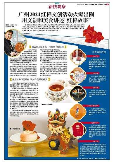 赏英雄花、游英雄城、传英雄志、弘英雄气。“英雄花开英雄城”2024传承弘扬红色文化系列活动在广州市遍地开花,红棉之旅、红棉展映、红棉研学、红棉潮墟等活动让人们再一次体会到广州这座英雄之城深厚的红色基因。近日,广州2024红棉文创活动中的500多款文创、香云纱红棉作品、岭南红棉宴等火爆出圈,红棉的故事,正以更时尚、更年轻的姿态,走进人们的生活之中。 香云纱上描春色 丹青笔下绘红棉 近日,中央文史馆书画院研究员、广州市美协原副主席李晓白一直在越秀公园东秀湖畔的花城里·陌上花开内忙碌着。在他笔下,红色和金色颜料在昂贵的香云纱上恣意流淌,木棉舒展的花瓣和遒劲的枝干,在轻薄典雅的扇面、柔软光滑的提包和小巧精致的书签上渐渐成形…… 走进花城里·陌上花开,不仅能看到画家李晓白的香云纱红棉画作、香云纱手绘提包、枕头、纸巾盒、丝巾等文创系列,还能品尝到红棉茶饮和红棉蛋糕。原来,在花城里·陌上花开早前的一次聚会中,李晓白受邀在香云纱上描绘屋外灼灼盛开的红棉,创意由此开启。“在珍贵的香云纱上画红棉,是传统文化、红色文化与艺术的融合,其艺术附加值不可估量。”李晓白说。 珍贵的香云纱素有“软黄金”之称,李晓白每次落笔都会用心构思琢磨,“如何在柔软的香云纱之上展现红棉蓬勃的精神,我还在不断摸索之中”。在织品上作画,还要感谢李晓白几十年前在针织厂做美工的经历,他说:“好像又找到了熟悉的感觉。” 好的设计和作品不能只止步于几件文创作品。国家级非遗项目香云纱染整技艺第四代传承人帅常英透露:“目前在设计制作李晓白老师所绘红棉纹样的香云纱,相信一定物超所值。香云纱也可以很时尚年轻,有更多的应用场景。”帅常英希望,通过艺术和非遗技艺的不断碰撞,可以让香云纱走进千家万户,走向更广阔的国际市场。 建店时种下英雄树 现如今创新红棉宴 以花入馔在岭南地区有着悠久的历史。岭南春夏湿热,用晒干的木棉花煲汤可祛湿健脾,捡木棉花也是不少小孩的共同记忆。 红棉盛开的时间节点,在“英雄花开英雄城”系列活动的背景下,广州酒家推出“岭南红棉宴”,木棉花被大厨以炖、炒、炸、灼、蒸等多种方式烹饪,再被以装盘、造型、面塑等手法包装,最终成为“六小食八主菜一汤一甜品”。 据介绍,“岭南红棉宴”仅收集和准备食材就要半个多月,从采集木棉到晒干,盐水浸泡预处理等工序都非常耗时且需要耐心。“岭南红棉宴”在创新之余,菜品设计还发挥了木棉花祛湿健脾的功效。其中的汤品“木棉赤小豆炖响螺”,是采用晒干木棉花、响螺、赤小豆、薏米等熬煮,鲜甜生津,祛湿解乏,最是宜人。 特别值得一提的是,“岭南红棉宴”中使用的木棉花多是采自其老字号门前的老树。这棵老木棉于建店时栽种的,历经大半个世纪的沧桑风雨,如今依然花开如炬。 红棉文创逐个睇 红棉花饼 红棉花形状的糕点,吃起来清爽不甜腻,这是广州文化集团独家设计的“红棉文创”小套装中的一件,套装中还有红棉香薰、红棉胸章和红棉帆布袋等。 红棉集章 在“英雄花开英雄城”系列活动中,有几十枚红棉相关印章,如英雄花开英雄城和中共三大主题五彩叠色戳。 红棉书签 将红棉与广州地标特色结合制作成小巧精美的书签,不仅具有实用价值,更具收藏价值。 广州塔木棉花胸针 在红棉文创展中展出了一款“广州塔木棉花胸针”,广州塔颜色绚丽,木棉花从塔身延展而出。 红棉笔记本 由广州神农草堂中医药博物馆推出的极具岭南特色的茶壶,展现岭南人的养生之道;还有展现第一次全国劳动大会相关历史的保温杯,同步推出红棉笔记本等,纪念意义和实用性兼具。 公益文创 在红棉文创展中也有着许多公益文创,如广州市康宁医院展示的红棉扇面、灯罩等文创都是康复者在康复训练师的指导下通力合作绘画和制作而成,希望引导社会大众给予他们更多的理解、包容和关爱。融爱社会服务中心展示的扭扭棒红棉花则是由残障人士手工制作而成。 ■文字:新快报记者 林翠珍 ■图片:受访者供图