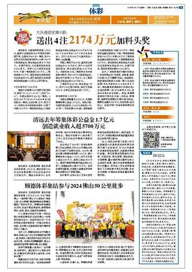 清远去年筹集体彩公益金1.7亿元 创造就业收入超5700万元