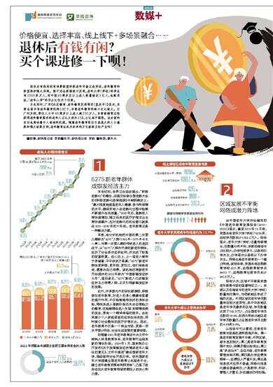 价格便宜、选择丰富、线上线下+多场景融合…… 退休后有钱有闲有消费欲望的新老年市场正在形成,老年教育的新蓝海亦随之浮现。据不完全数据统计发现,老年大学(学校)的学生有1000多万人,而中国