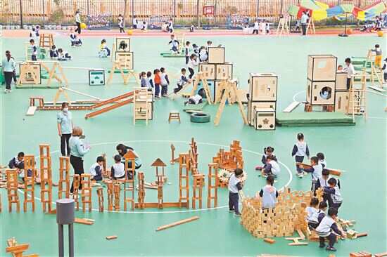 ■在广东第二师范学院实验幼儿园,小朋友们在玩游戏。广州公布幼儿园收费新标准,项目统一为保育教育费、服务性收费和代收费三种。(新快报资料图) |