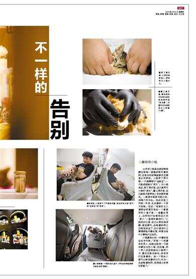 ■善终师小姚 22岁的小姚是这家动物殡葬店里唯一接触动物的善终师,店里当初招聘就要求应聘者必须养宠。小姚养了两只猫,一只是橘猫叫“金钱宝”,一只是虎斑猫叫“虎子”。对小姚来说,脱下黑手套,