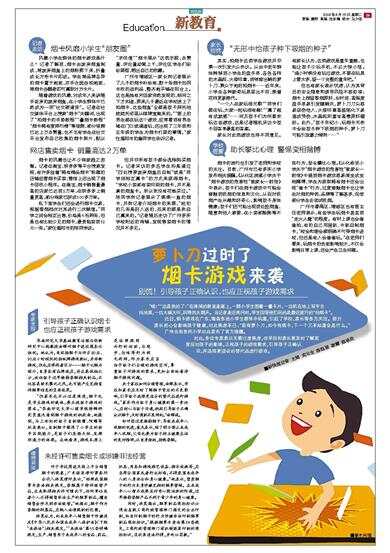 别慌!引导孩子正确认识,也应正视孩子游戏需求 “啪!”“这是我的了!”在课间的教室走廊上,一群小学生围着一叠卡片,一边趴在地上双手击拍地面,一边大喊大叫,玩得热火朝天。当记者走近询问时,学生回答他们玩的是最近流行的“拍烟卡”。 近日,烟卡游戏在广东、海南多地小学生群体中风靡,引起了学校、家长等多方关注。部分家长担心会影响孩子健康,对此焦虑不已:“前有萝卜刀,如今有烟卡,下一个又不知道会是什么。”广州也有多所小学对此发布了官方提醒。 对此,多位专家表示无需过度焦虑,但学校和家长要及时了解其背后对孩子的影响,正视孩子的游戏需求,引导孩子正确认识,并选择更适合的替代品进行游戏。 记者走访 烟卡风靡小学生“朋友圈” 风靡小学生群体的烟卡游戏是什么?记者了解到,烟卡由废弃烟盒制成,将废弃烟盒上的烟标剪下来,折叠成长方形卡片即成。学生将品牌各异的烟卡置于地面,双手合拢击拍地面,将烟卡击翻者即可赢取对方卡片。 随着游戏的风靡,对成年人来讲随手丢弃的废弃烟盒,在小学生群体中已然成为一项“社交硬通货”。记者在社交媒体平台上搜索“烟卡”关键词,出现了“拍烟卡的手势教程”“叠烟卡教程”“烟卡稀有度排行榜”等视频,部分视频已达上万点赞量,也不乏有学生在社交平台发布自己收集的烟卡照片,配以“求估值”“烟卡展示”这类字眼,点赞量、评论量动辄上千,评论区学生们纷纷跟图,晒出自己的收藏。 广州市增城区一家长向记者展示了儿子的烟卡补给库,数十张烟卡如同丰收的战利品,整齐地平铺在阳台上。这也是她有天回家突然发现的,细问之下才知道,原来儿子最近在学校迷上了拍烟卡,这些烟盒“全都是孩子拜托他姥姥托邻居从棋牌室淘来的。”“班上的男生都在玩这个游戏,经常看到有男生堵在门口或通道玩,还出现了三年级和五年级的学生为烟卡打架的事情。”家住揭阳市的詹同学也告诉记者。 网店售卖烟卡 销量高达2万单 烟卡的风靡也让不少商家趋之若鹜。记者在淘宝、拼多多等平台搜索发现,有许多挂着“稀有精品烟卡”标题的店铺经营烟卡买卖,微信上还出现了烟卡回收小程序。在淘宝,烟卡销售量最高的店家已达到2万单,在拼多多上销量更高,部分商家已拼成100多万单。 私下里学生们还会进行烟卡交易,根据香烟档次对其进行二次赋值。“同学之间会相互出售,价格是5毛两张,但是也有比较少见的烟卡,最贵能卖到12元一张。”家住揭阳市的陈同学说。 但并非所有孩子都会选择购买烟卡。记者采访的多名学生均是通过“四处搜罗废弃烟盒后自制”或是“同学间相互赢卡”的方式来获得烟卡。“学校小卖部有卖印刷的烟卡,并不是真的烟盒卡。所以我没有花钱买过。”陈同学向记者展示了满满一盒的烟卡,并向记者介绍烟卡的来源,“起初的几张是别人送的,后来的都是我自己赢来的。”记者随后走访了广州多所学校附近的商铺,发现售卖烟卡的情况并不多见。 家长担忧 “无形中给孩子种下吸烟的种子” 其实,拍烟卡这类学生游戏并非第一次引发大众热议。从由中老年群体转移到小学生的盘手串、各色各样的水晶泥、火漆印章,到伸缩出鞘的萝卜刀、聚众于地的拍烟卡……近年来,小学生各种新奇玩具层出不穷,换着花样更新换代。 “一个人在家玩很无聊”“同学们都在玩,大家一起玩很有趣!”“赢了超有成就感”……问及孩子们为何喜欢玩这些游戏,这是记者随机采访中孩子回答率最高的答案。 家长对此类游戏也持不同意见。有家长认为,这类游戏是童年童趣,也能让孩子少玩手机,不必大惊小怪。“谁小时候没有玩过游戏,不要在玩具上管太多,留一个完整的童年吧。” 但也有家长表示忧虑,认为其背后的安全隐患和诱导风险不容忽视:烟卡上残留香烟原料,长时间、高强度盘手串易引发腱鞘炎,萝卜刀刀尖容易误伤他人,火漆印章高温熔化下易造成烫伤,水晶泥则富含高毒原料硼砂。此外,“孩子年纪小,玩烟卡无形中会给孩子种下吸烟的种子,萝卜刀可能引发暴力倾向……” 学校提醒 助长攀比心理 警惕变相赌博 烟卡的流行也引发了老师和学校的关注。目前,广州市已有多所小学发布相关提醒。《从化区流溪小学关于“烟卡游戏的危害性”致家长一封信》中表示,孩子们在烟卡游戏中可能会接触到吸烟的信息和文化,从而对吸烟产生兴趣和好奇心,影响孩子身体健康;孩子们还可能出现到处捡烟盒、随意向他人索要、在小卖部赊账等不良行为,助长攀比心理。《从化希贤小学关于“烟卡游戏的危害性”致家长一封信》中提到烟卡游戏容易演变成变相赌博,学生为获取稀有烟卡还会出现“偷卡”行为,过度接触烟卡也让学生对烟的种类、品牌等了解甚多,促使部分学生去尝试吸烟。 广州市番禺区、增城区也有班主任老师表示,有些学生玩烟卡甚至到“走火入魔”的程度。有时上课也会偷偷拍,有的自己用画纸、卡纸自制烟卡,“校会和班会都明确不可带烟卡进校,但还是有人会偷偷玩。”在老师们看来,玩烟卡的负面影响较大,不仅会影响日常上课,还会产生卫生问题。 专家支招 引导孩子正确认识烟卡 也应正视孩子游戏需求 华南师范大学基础教育治理与创新研究中心副教授余晖对烟卡进校园表示担忧。他认为,虽然拍烟卡与许多80后、90后小时候玩的拍