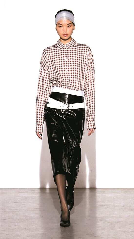 铅笔裙作为这一风格的核心单品,同时也是今年春夏流行半裙中的一员,更多面料和元素被应用过来。 |