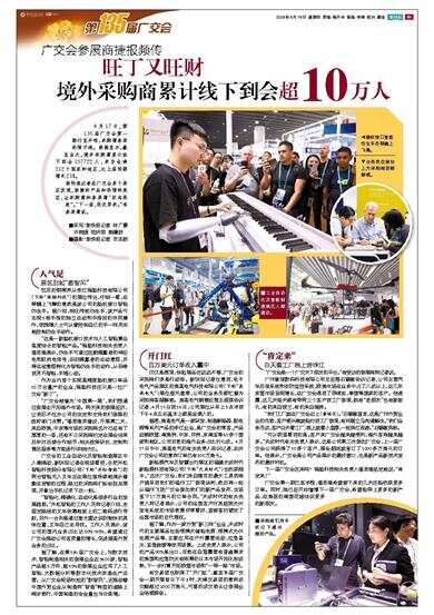 广交会参展商捷报频传 4月17日,第135届广交会第一期行至半程,采购商参展热情不减。数据显示,截至当天,境外采购商累计线下到会107722人,来自全球212个国家和地区,比上届同期增长2